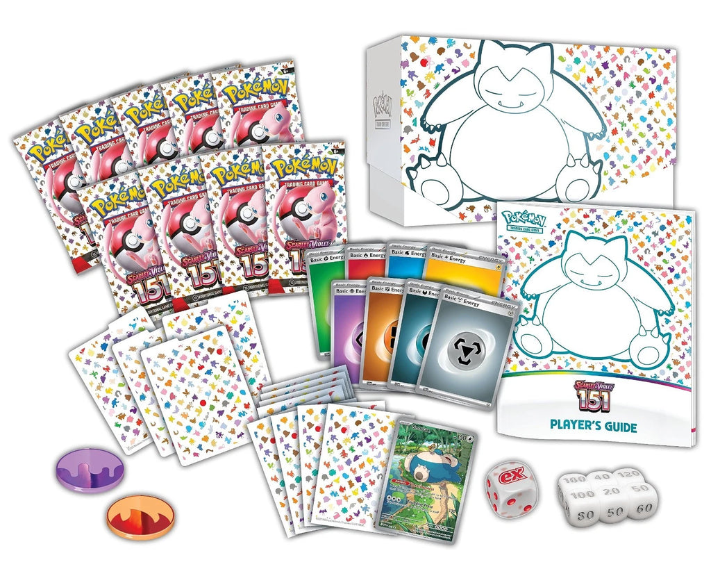 The Pokémon TCG: Scarlet & Violet – 151 Elite Trainer Box is packed with everything collectors and players need. Inside, you’ll find 9 Scarlet & Violet – 151 booster packs, a full-art promo card featuring Snorlax, 65 themed card sleeves, 45 Energy cards, dice, condition markers, a player’s guide, and a sturdy collector’s box with dividers—plus a Pokémon TCG Live code card.