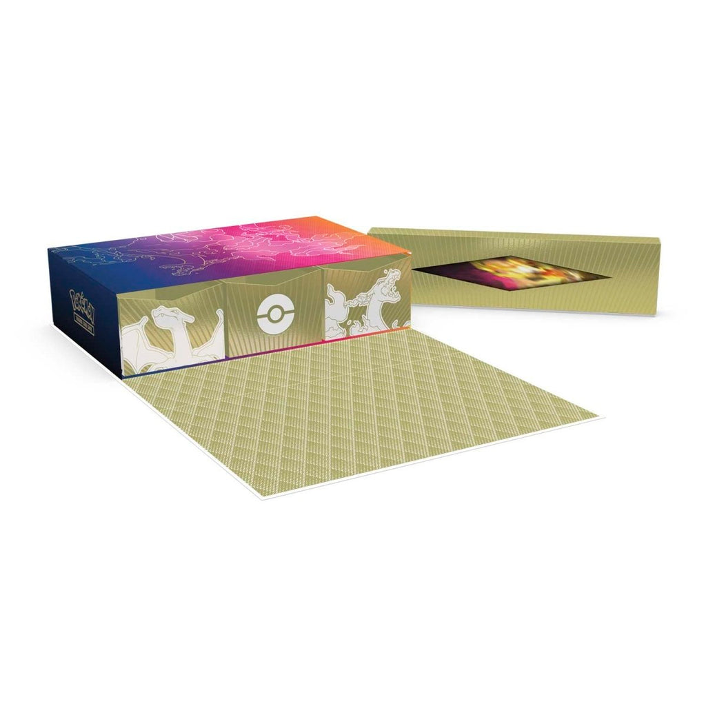 The Pokémon TCG: Sword & Shield – Charizard Ultra Premium Collection is a must-have centerpiece for fans of the iconic Fire-type. This premium box includes 16 booster packs, three etched promo cards featuring Charizard V, Charizard VMAX, and Charizard VSTAR, a Charizard-themed playmat, metallic coin, damage dice, condition markers, and a stylish collector’s box to keep your collection organized.